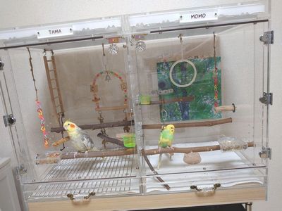 オカメインコ、オウム、ヨウムなど小鳥の鳥かご用アクリルケースを製作販売しています。 保温・防音・脂粉対策に! その他バードジム、止まり木など