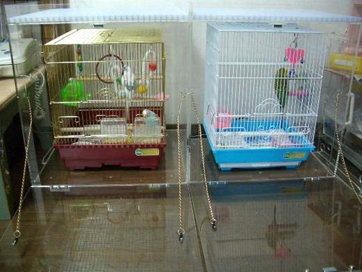 ケースの中は、とても工夫されていて、部屋というより、町内のご近所同士みたいで鳥さんが楽しく暮らせそうですね。