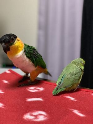 キスケ(シロハラインコ)&メルちゃん(マメルリハ)
