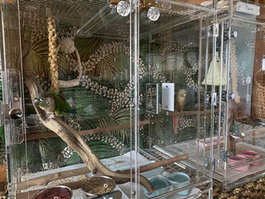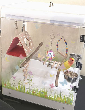 オカメインコ、オウム、ヨウムなど小鳥の鳥かご用アクリルケースを製作販売しています。 保温・防音・脂粉対策に! その他バードジム、止まり木など
