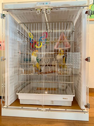オカメインコ、オウム、ヨウムなど小鳥の鳥かご用アクリルケースを製作販売しています。 保温・防音・脂粉対策に! その他バードジム、止まり木など