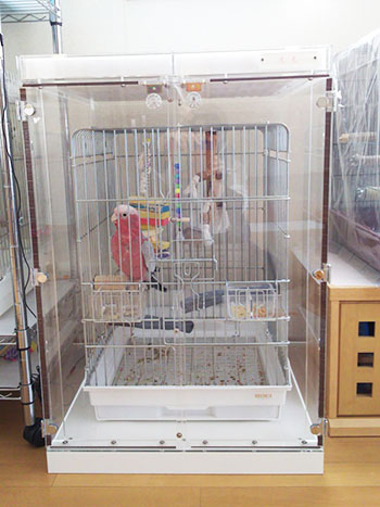 オカメインコ、オウム、ヨウムなど小鳥の鳥かご用アクリルケースを製作販売しています。 保温・防音・脂粉対策に! その他バードジム、止まり木など