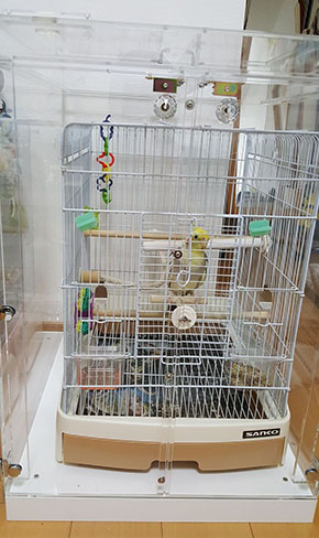写真はうちのヨウムとオキナです。 底は板回りを薄めの塩ビシートで囲ってバードマットを敷いています。 早くもジムが鳥たちのお気に入りの場所になったみたいで、ずっととまっています。 私も鳥も本当に満足しております。 ありがとうございました。アクリルケースも楽しみにしております。