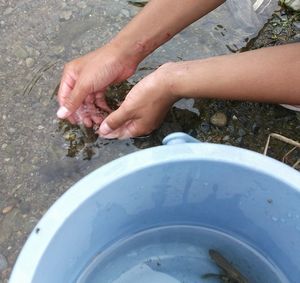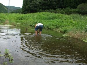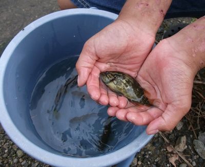 最後にまた、珍しい魚を手に取り、川へそっと帰してやりました。