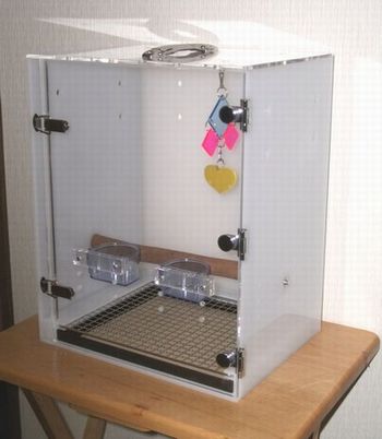 オカメインコ、オウム、ヨウムなど小鳥の鳥かご用アクリルケースを製作販売しています。 保温・防音・脂粉対策に! その他バードジム、止まり木など