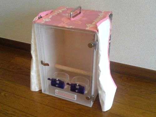 p44,東京、もみじちゃん、 キャリーケース 今日は・・・ 東京のもみじちゃんを ご購入頂いたアクリルキャリアーとともに ご紹介します ご購入者様によりますと・・ 「どこで買ったんですか?」って聞かれるそうで、 どこへ持って行っても好評だそうです。 アクリル板の色合わせなど、すべてご希望通りだったの事です。 写真はもみじちゃんご家族の手作りカバーです(正面から見たところです) ソフトなピンク色の下地と、エキゾチックなデザインの布で とってもかわいいです 側面後方より見た感じです また正面部分だけ、カバーを広げられるところなど とっても工夫されていますね 写真はまだ製作途中だそうですが、見た目ほぼばっちりだとおもいます 狭いキャリーケースの中でも リラックスしてくれているような? もみじちゃん。 いったいなにを想っているんでしょうね~ アクリルキャリアーはアクリル加工を得意とする パッピーケースさんが 屋外への愛鳥さんとの散歩、病院への移動等 を目的に製作されました。 こちらも鳥かご鑑賞ケースと同様に、 お客様のご要望とともに、 仕様等を試行錯誤してきた過程があるようですが、 アクリルの色や(透明、スモーク、乳半色など) サイズなど、ご希望があれば相談にのってくれます。 よかったら一度、HPの方ものぞいてみてくださいね~
