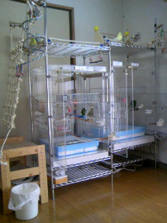 お使いのカバーは、手造りかもしれませんが、 市販にも、カゴにぴったり、作るより安価なものもあるようです。 台が出来てからのカバー。 ケースの位置が高くなると、カゴへのカバーはしにくいですね。 全体を覆って、鳥さんも安心して眠れそうです。 【布地キルト】 ペレットを沢山食べるので、 すごく汚れるとか(^^) ケースで掃除が楽になったそうです (ストレス軽減^^) 台の下側も、小物入れの引き出し おやすみカバーなど収納 ケースの思い切った使い方。 たまには、こんな使い方もいいかも。 鳥かごのお掃除中? いえいえ ほんとに、のんびりさせていただいたのかな (*^_^*) まめちゃん 有難うございました