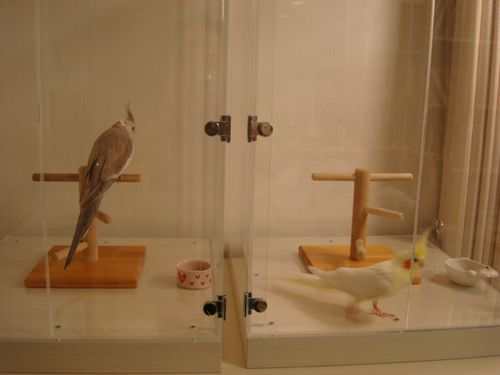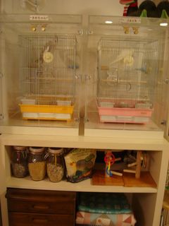 p38,北海道のあんずちゃん、くるみちゃん、自作鳥マンション(必見!) 前倒し式扉 & 差込式扉、2台 鳥OKマンションで楽しくお暮らしでしたが、状況が変わり、 一旦鳥を他へ預けられたそうで、 とても寂しかったとのこと。