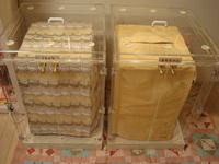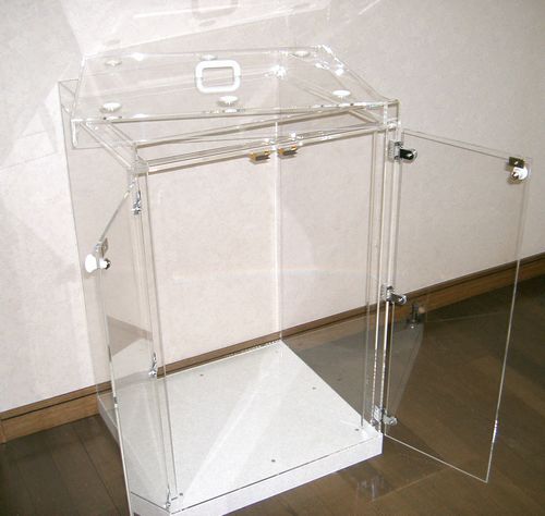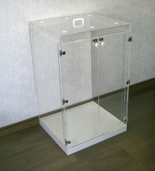 アクリル製 鳥かご鑑賞ケースは インコ、オウム、ヨウムなどの小鳥のケージをカバーする 目的でつくられました。 主な効用といたしましては アクリルでケージを囲うため、 寒い時期の保温(アクリル内は外気から遮断されヒーターを併用した時の保温効果UP) 羽の飛散防止、脂粉の飛び散り防止に 多少の防音対策に(アクリルで全面を囲うため) また今の季節、室内でのエアコンの直接の冷気から愛鳥さんを守る などの 効果があるかと思います。 アクリル製 鳥かご鑑賞ケース★観音開き仕様★ 観音開き仕様はパカッと、扉が開き、正面からケージを出し入れできるので 使い勝手が良いと評判です。 写真は、 サイズ:横570×奥行570×高さ840㍉ 正面入口:横510×高さ715 上部入口:横510×奥行510 重さ:約、15キロ 材質:アクリル5ミリ となっておりますが、実物は記載の寸法の感覚を はるかに超え、「どど~ん」とかなり重量感が あり、迫力を感じられるみたいです・・ ところでこのケース、ほぼハンドメイドの オーダーメイドとなっていますので 注文があってからの製作になります。 ですので、注文が込み合っている時や、 繁忙期は1~2週間お待たせする事もあるようです。 そのかわり、お客様のケージの大きさなどをメールなどでお知らせすると ご希望のサイズでケースを製作してくれます。 穴あけやその他のご希望にも丁寧に対応してくれて (料金は別途) オリジナルのケースを製作してくれます。 ご依頼の時は、メール、お電話、もしくはFAXで(図など書き) 細かくケージのサイズや、使い方をお伝えしたほうが良いです。 何故なら、出来上がりがより自分のイメージしたものに 近づくからです。 出来上がってきてみたら、ケースの中にケージが 入らなかった、また玄関から入らなかった なんて事にならないように また今でしたら、愛鳥さんのネームプレートもつけてくれます お値段のほうは・・ちょっぴりと感じるかもしれませんが 相談だけでも気軽にお問い合わせもできます♪ HPはこちら