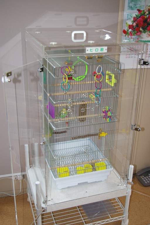 p11、アクリル鳥かご鑑賞ケースご使用例 H様 千葉県、マシューchan ケースサイズ:W600×D430×H850